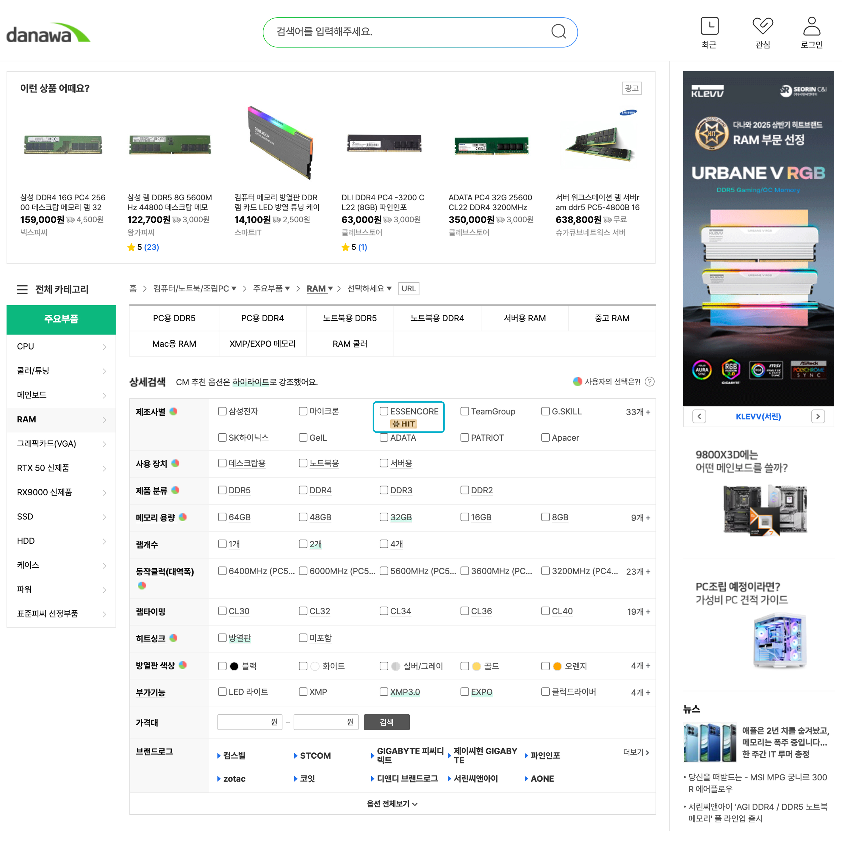 • Danawa 2025 2H Hit Brand webpage – KLEVV RAM